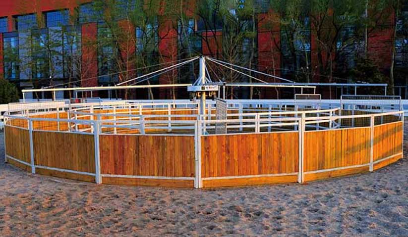 高級型遛馬機(jī)、標(biāo)準(zhǔn)型遛馬機(jī)、簡易型遛馬機(jī)、遛馬機(jī)內(nèi)外圈圍欄、全封閉屋頂、半封閉屋頂
